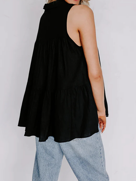 White Solid Color Lace Crochet Eyelets Sleeveless Buttoned Shirt