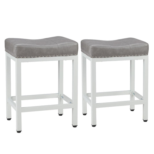 Set of 2 Grey Saddle Bar Stool Kitchen Stools