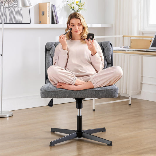 Grey Wide Ergonomic Armless Office Chair w/ No Wheels