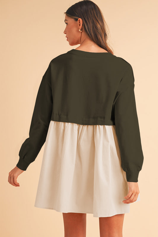 Khaki Sweatshirt 2-in-1 Flowy Pleated Mini Dress