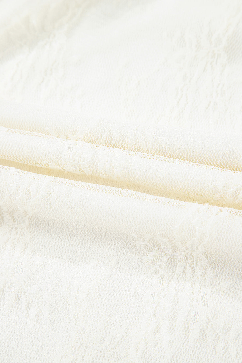 Beige Lace Cascading Tiered High Waist Maxi Skirt