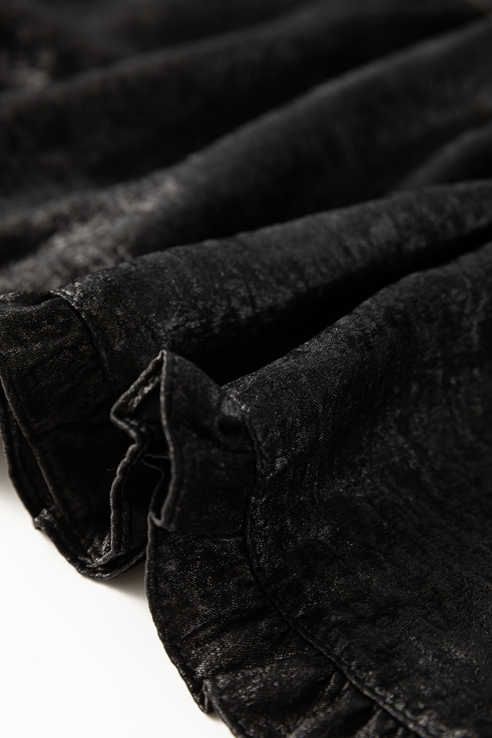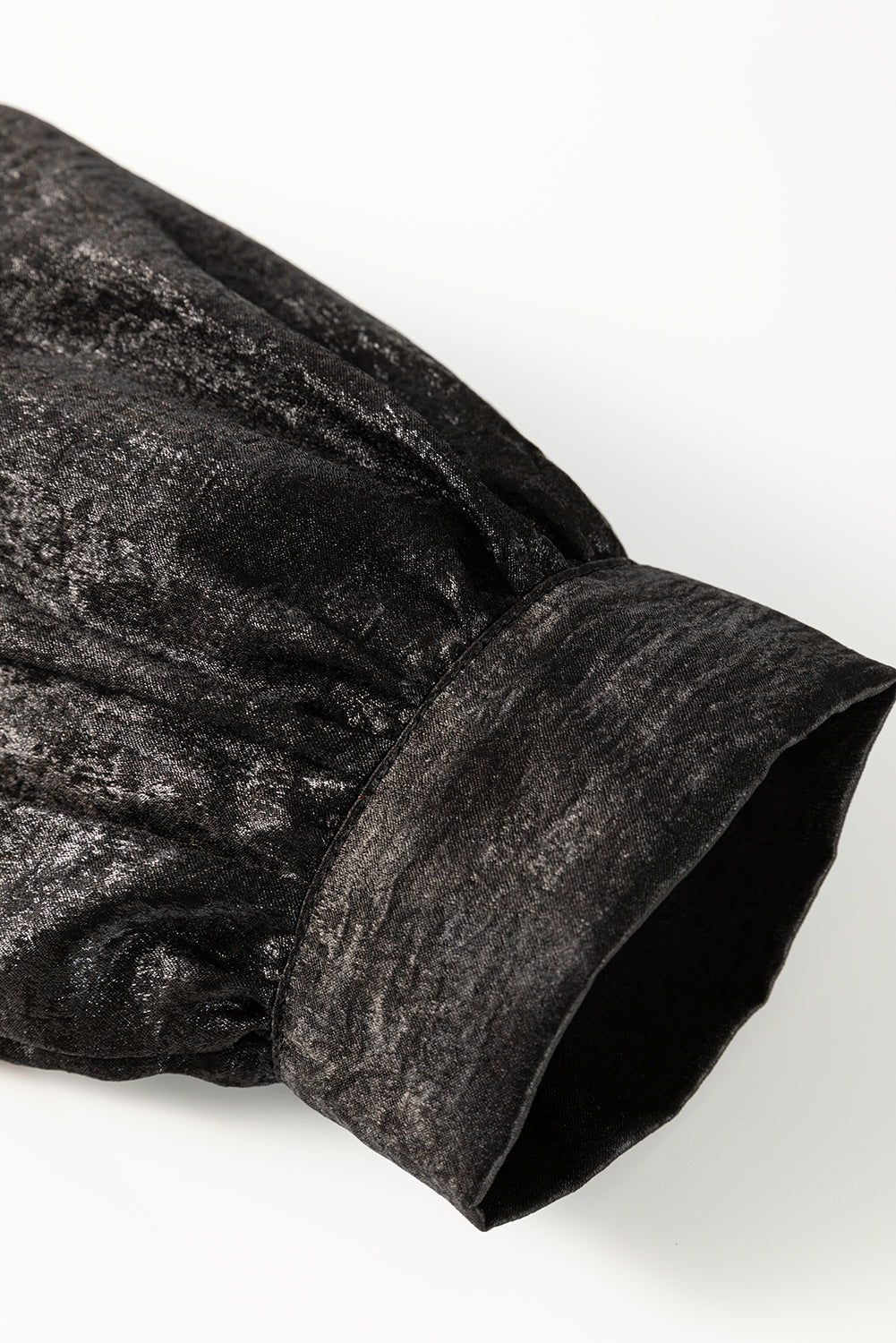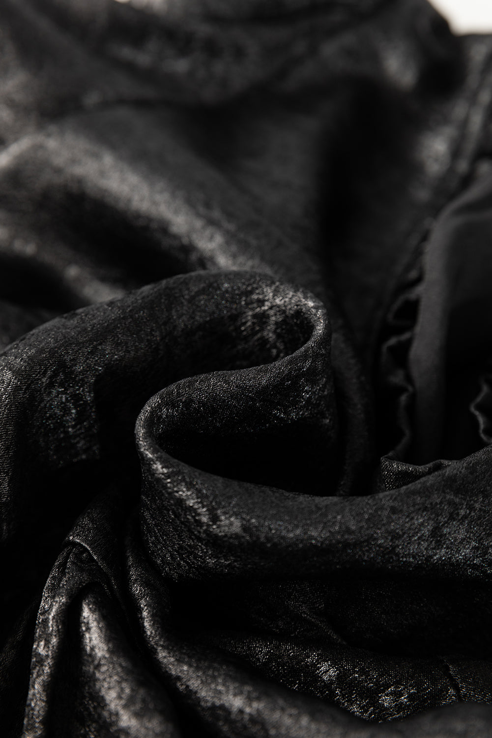 Black Metallic Frilled V Neck Puff Sleeve Babydoll Blouse