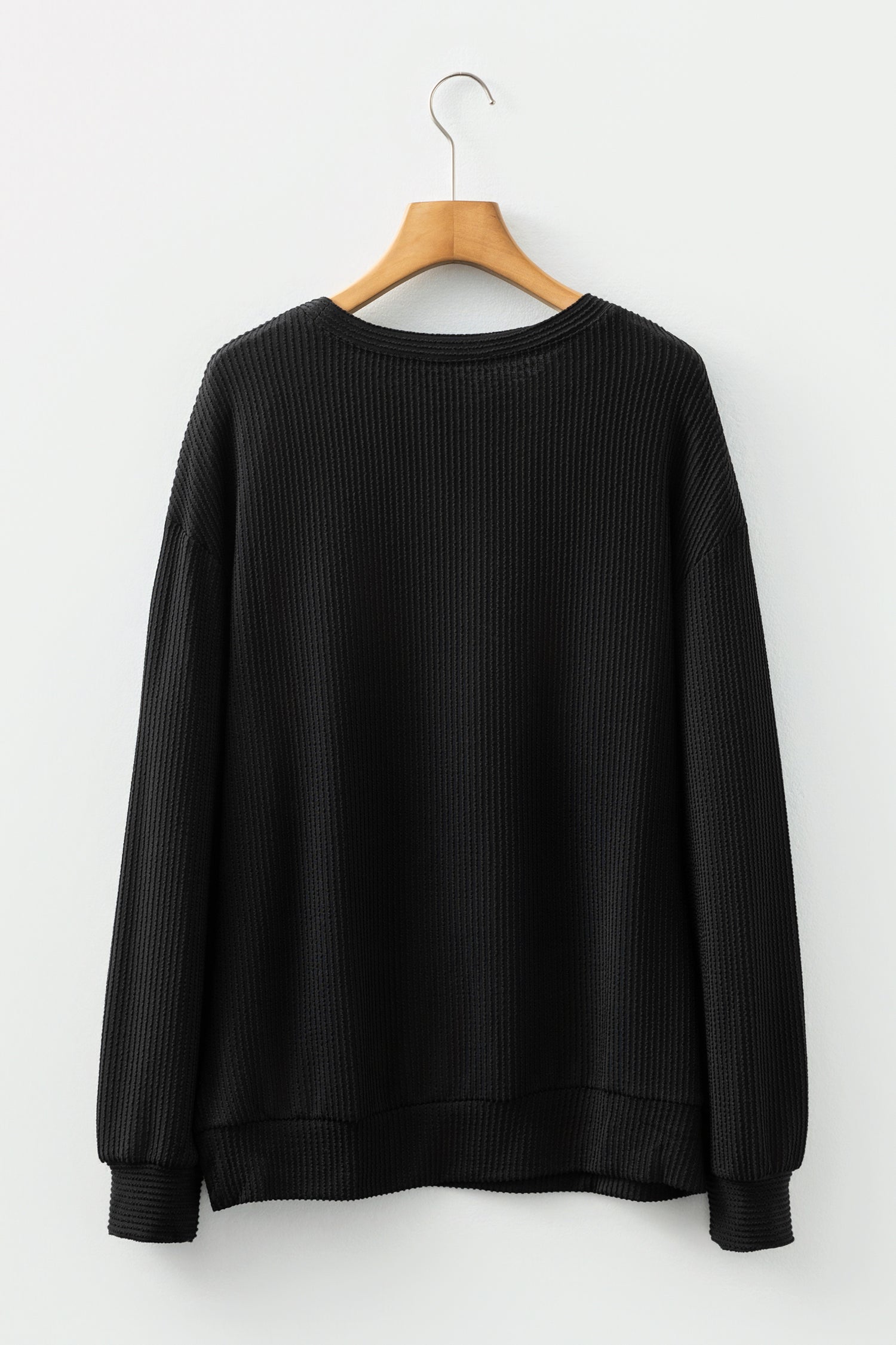 Black Twisted Rib Outlined Merry Letter Graphic Loose Long Sleeve Top
