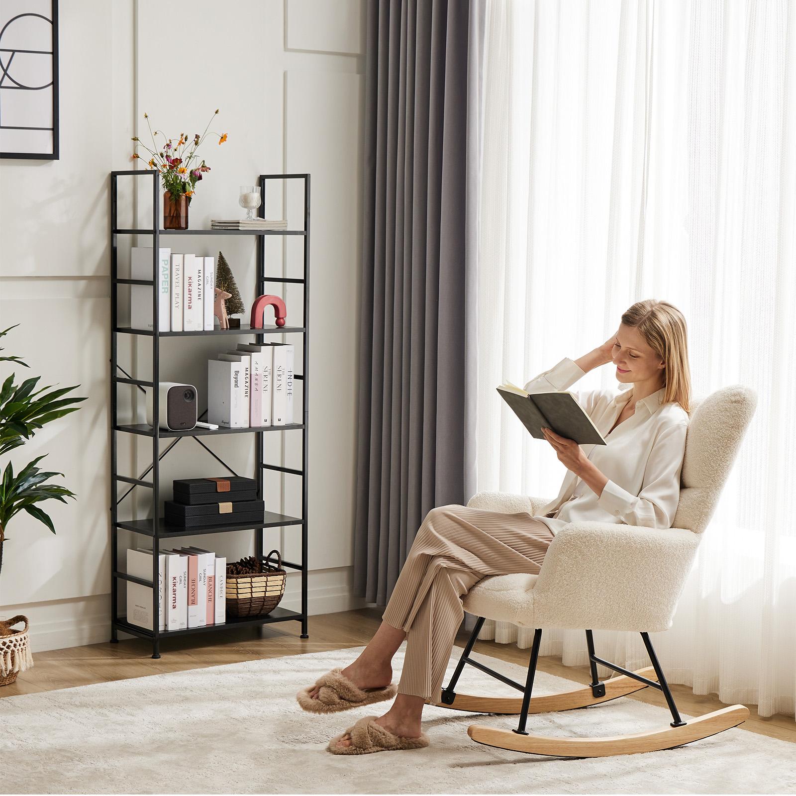 【Multiple Usage Scenarios】The simple and fashionable exterior design complements various home styles, making your 5 tier bookshelf not only a place to store, but also a decoration, adding an artistic atmosphere to your space. Perfectly fit with living room, bedroom, study, entrance, hallway, office, etc.