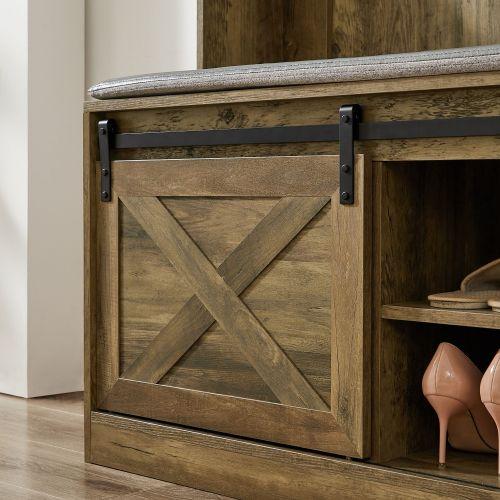 Brown Coat Rack w/ Shoe Cabinet Storage