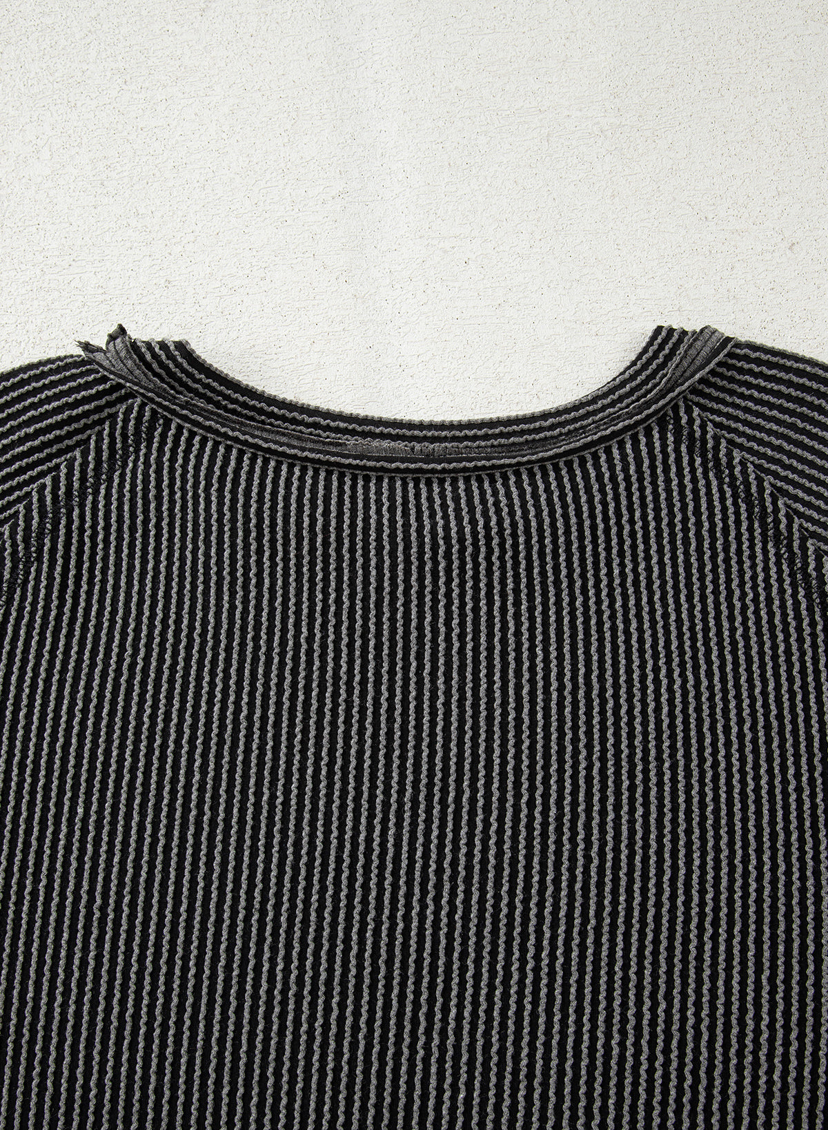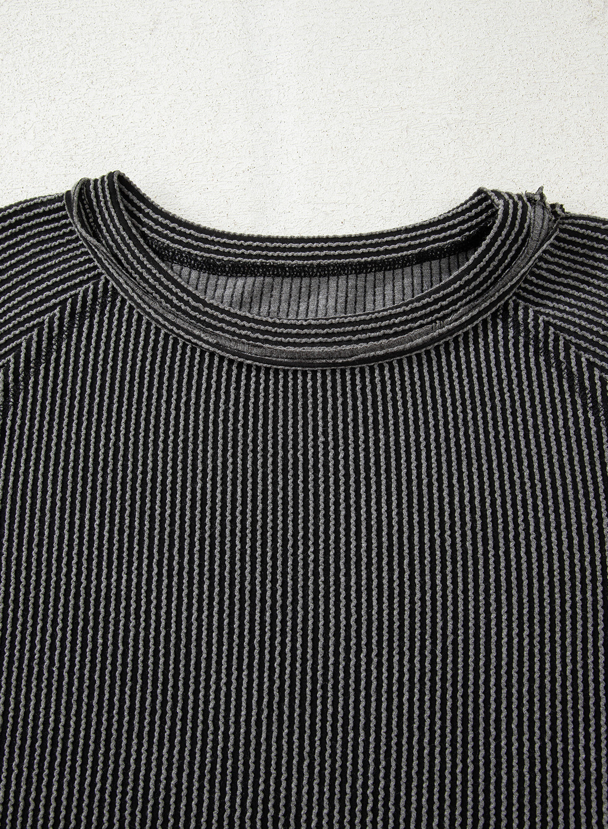 Dark Grey Corded Lantern Sleeve Top High Waist Ruffled Mini Skirt Set