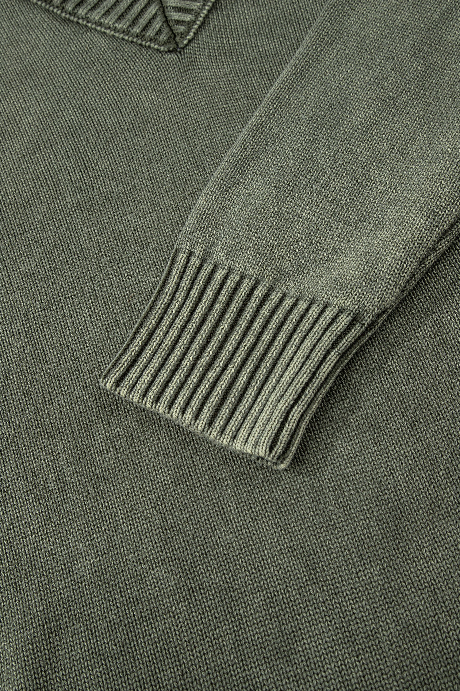 Four Leaf Clover Mineral Wash V Neck Knit Exposed Seam Drop Shoulder Loose Sweater