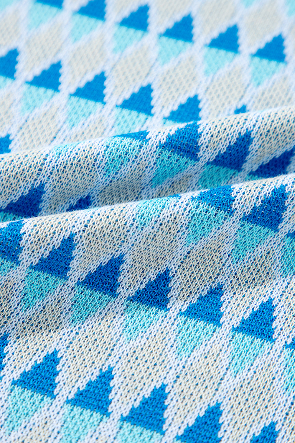 Sky Blue Stripe Geometric Print Round Neck Slim Fit Sweater Vest