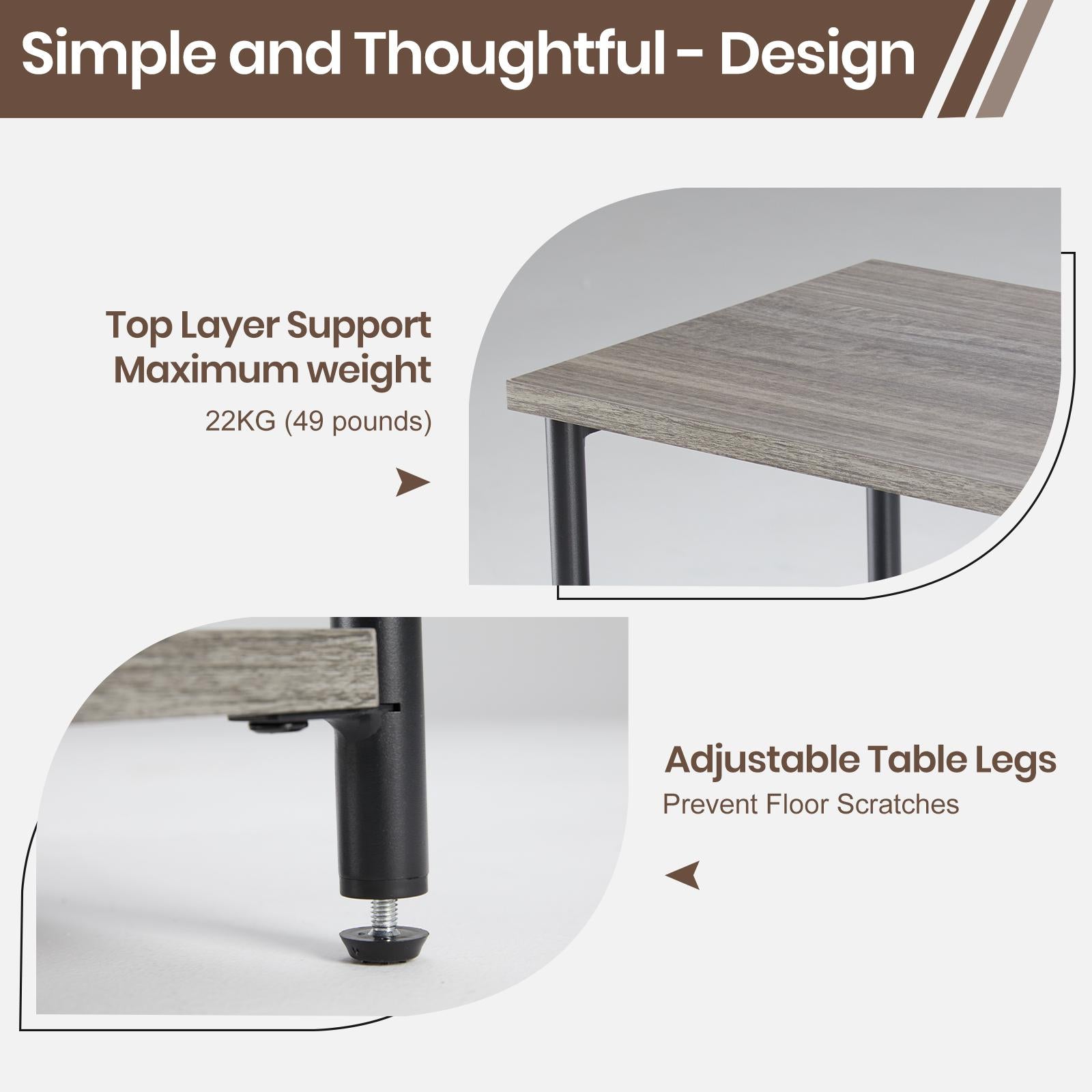 【Sturdy and Durable】 The top layer of the table supports up to 22KG(49 pounds), while the lower two layers can each handle up to 20KG(44 pounds). This ensures that the table is both strong and reliable for all your storage and display needs.