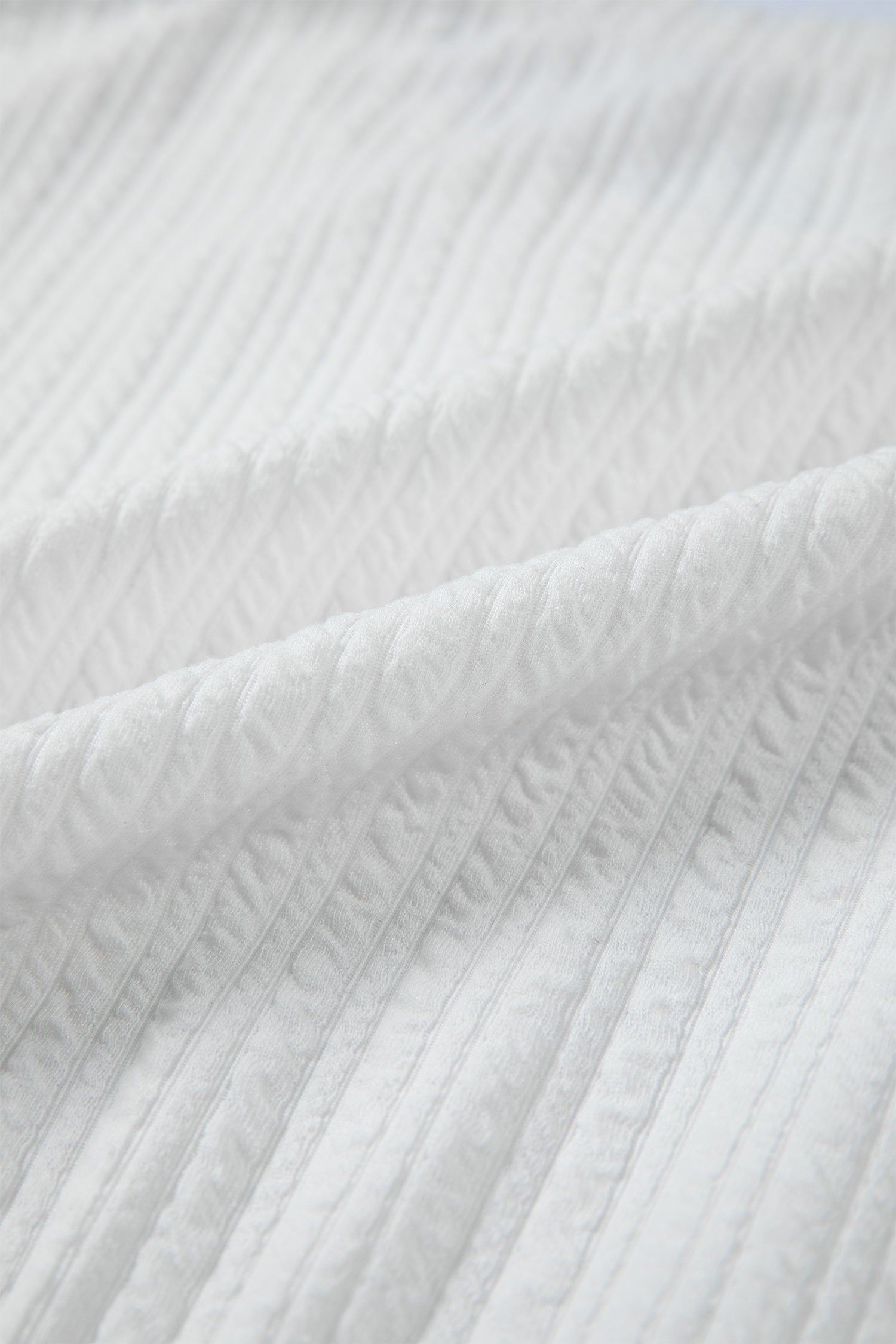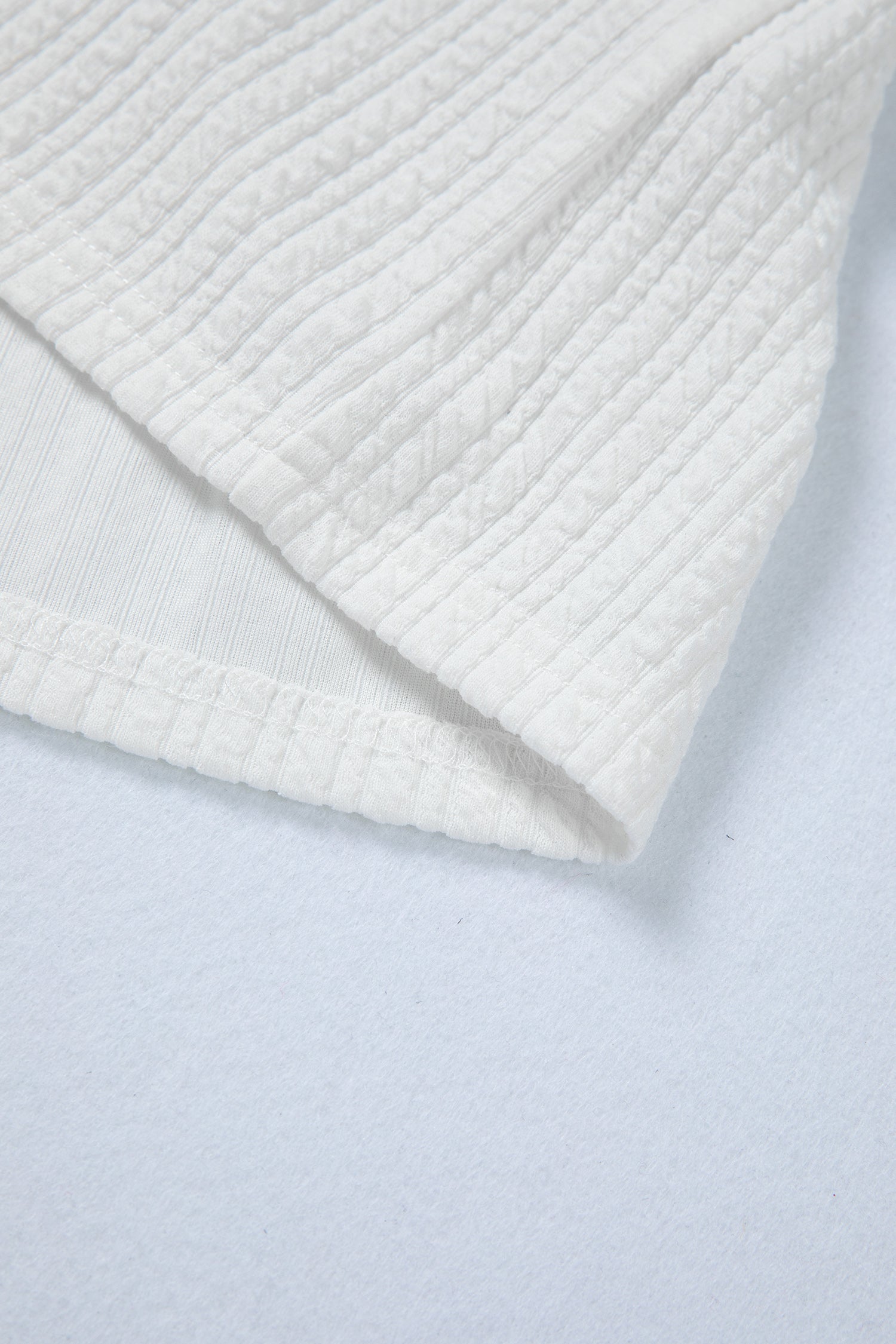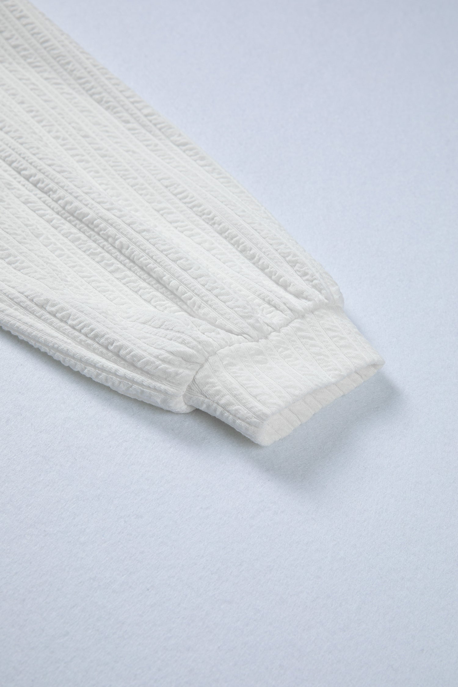 White Solid Color Textured Drop Shoulder Long Sleeve Peplum Top
