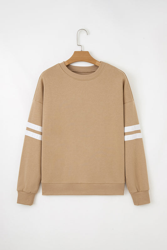Light French Beige Varsity Striped Detail Drop Shoulder Oversized Sweatshirt