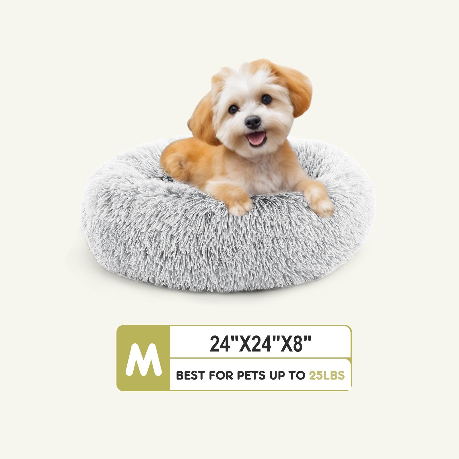 Medium Grey Anti-Slip Fluffy Plush Faux Fur Pet Bed