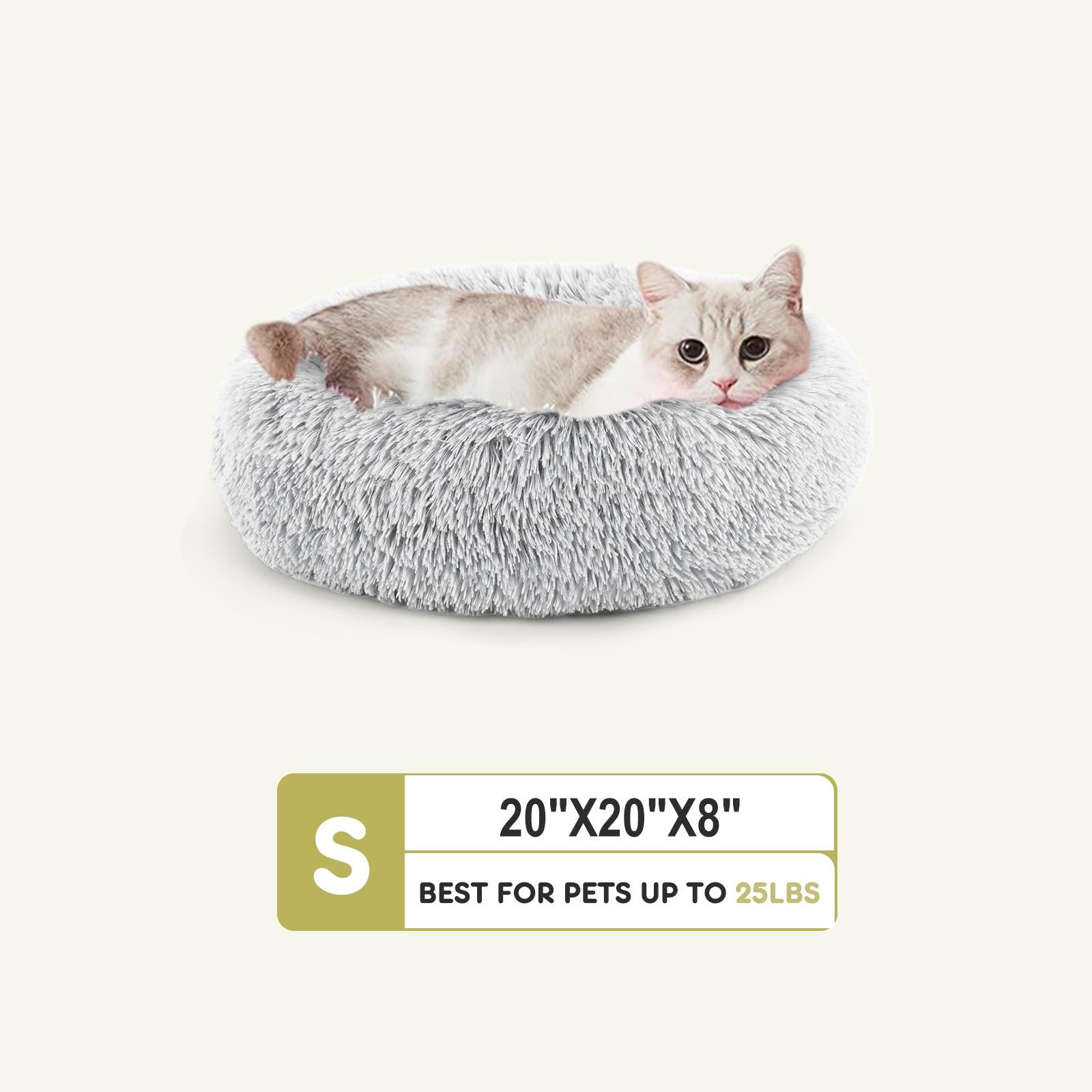 Small Grey Anti-Slip Fluffy Plush Faux Fur Pet Bed