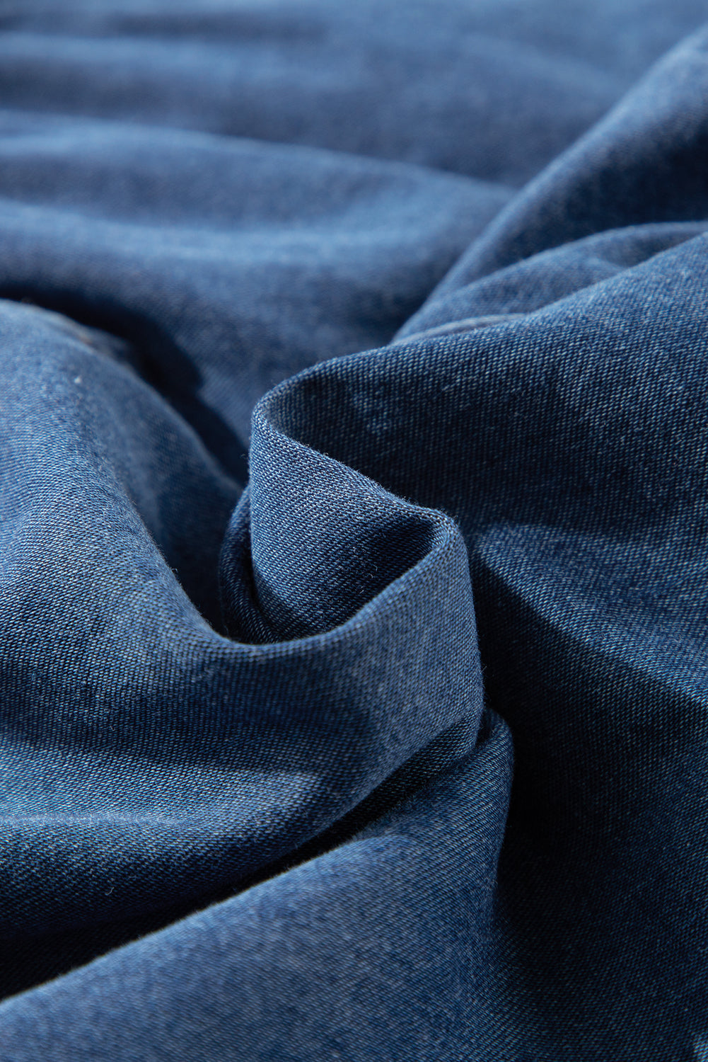 Convenient side seam pockets and cute raw fringe bottom edge finished.