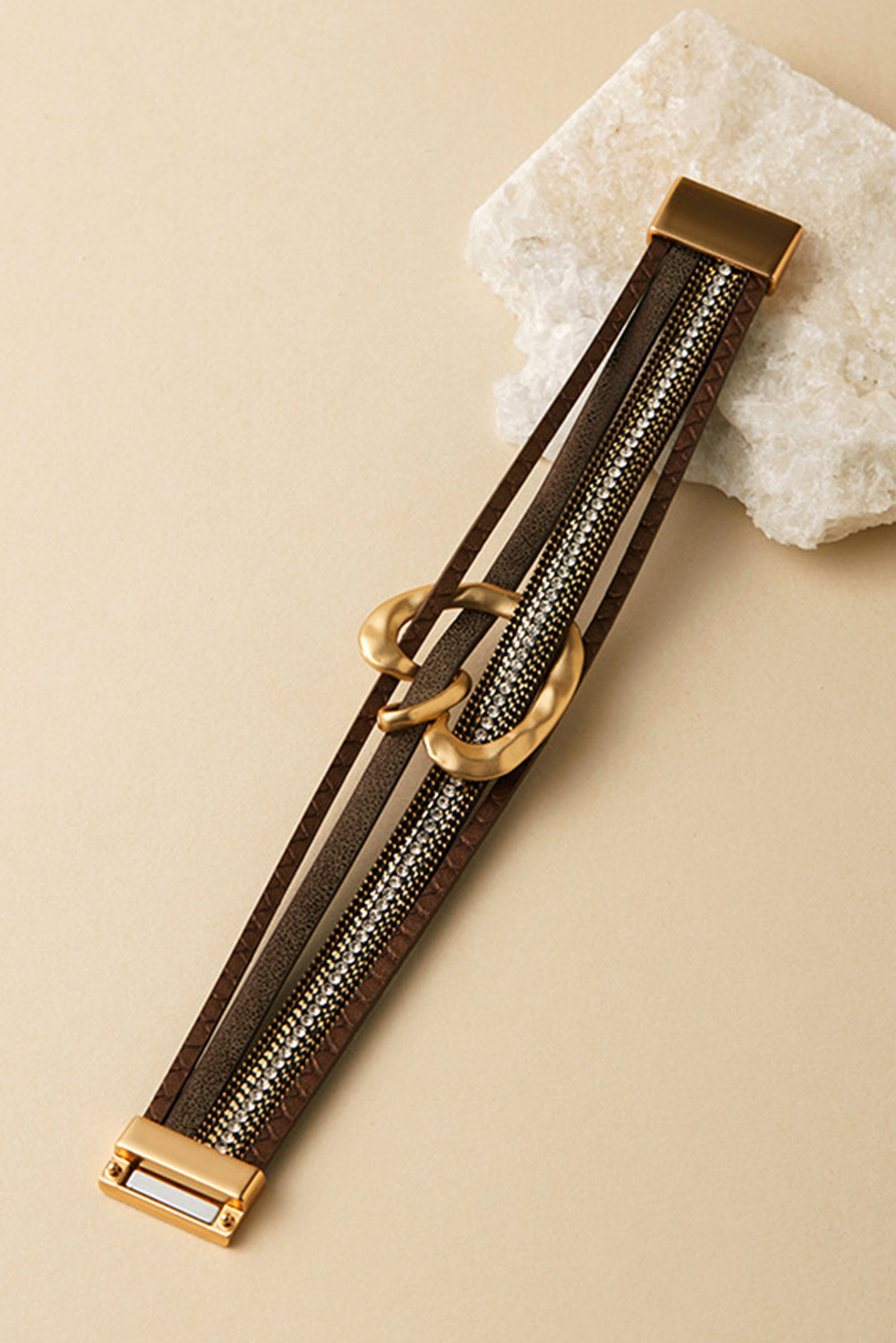 Coffee Retro Heart Pattern Multi-Layer Magnetic Buckle Bracelet