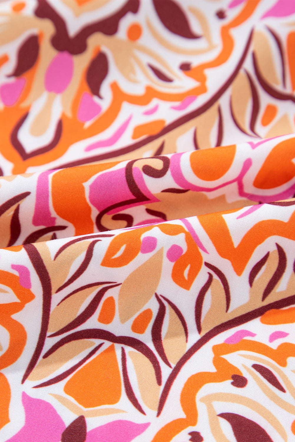 Khaki Abstract Printed Long Sleeve Tied Neckline Mini Dress