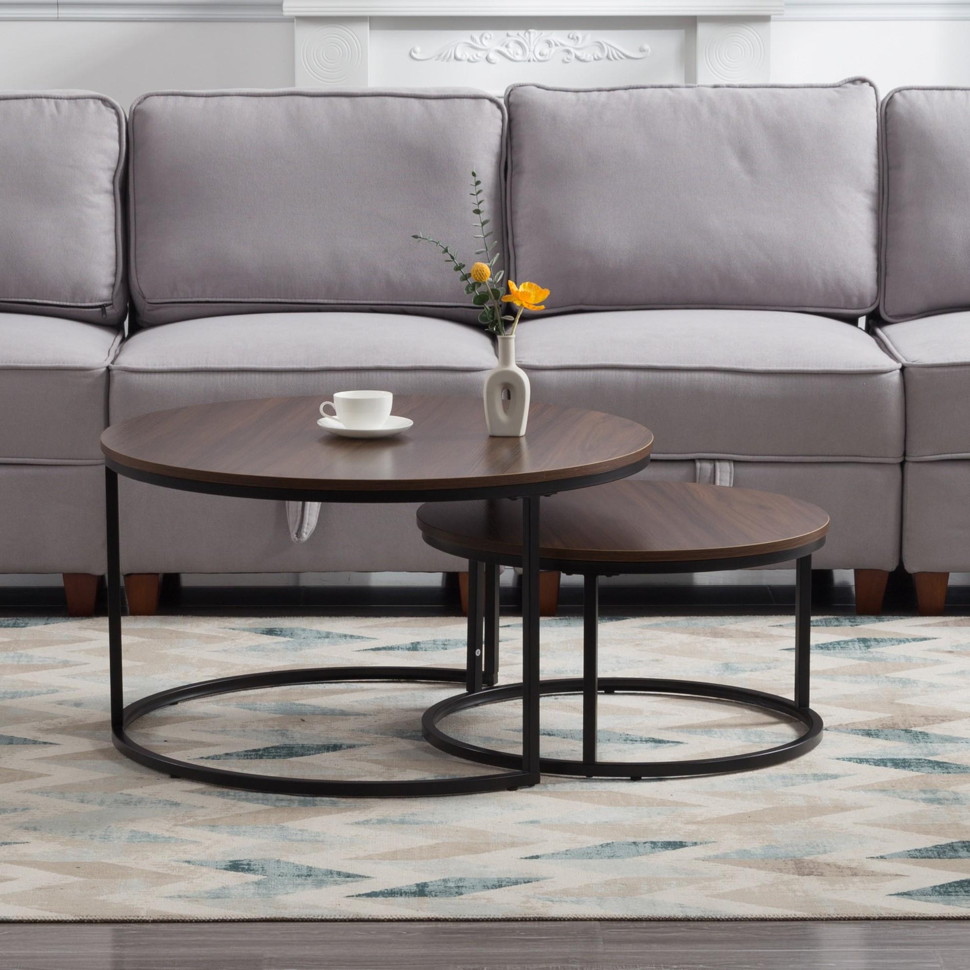 -Nesting Round Coffee Table Set of 2-piece, allowing for flexible usage, can be put them nesting, stacking, or individually placed.