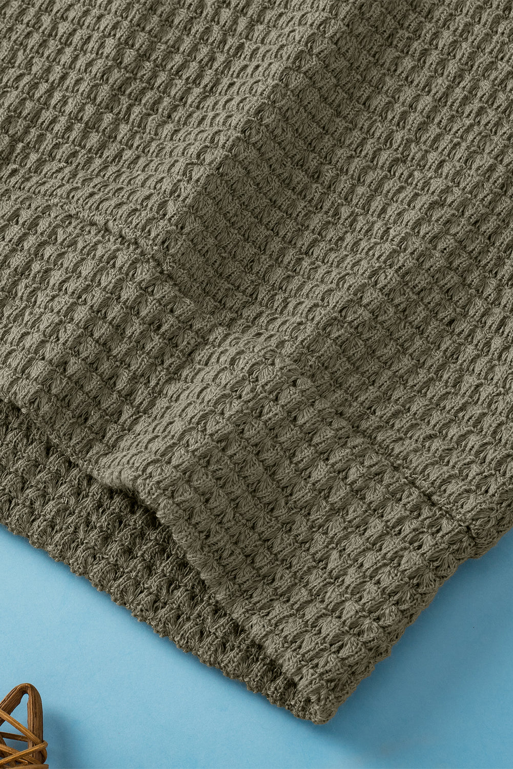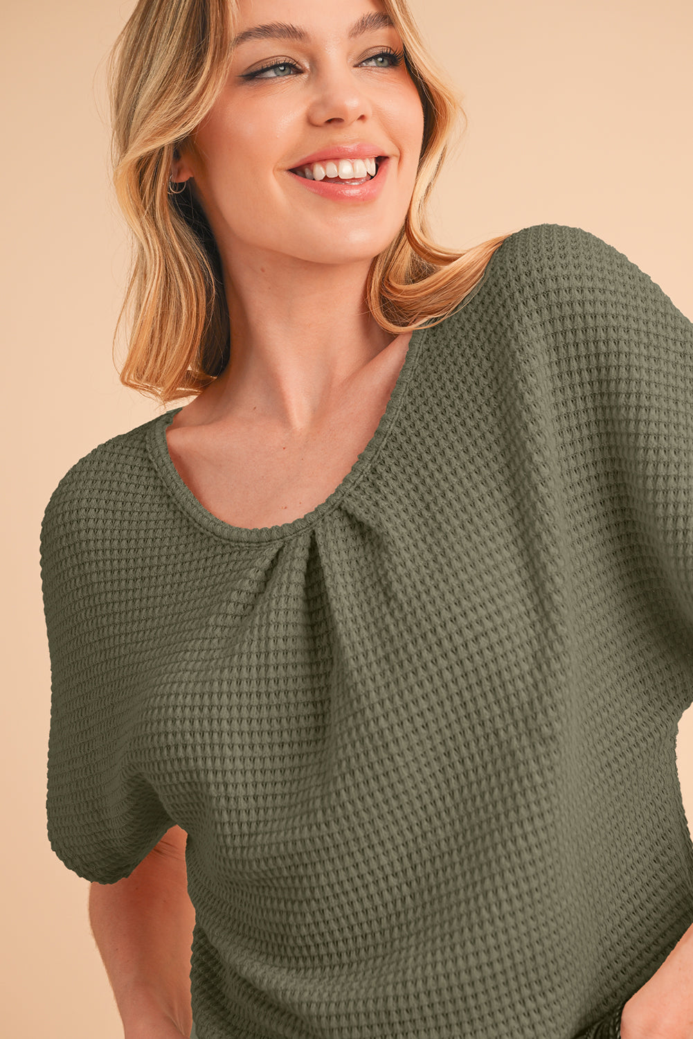 Oatmeal Guipure Lace Splicing Back Waffle Textured T-shirt