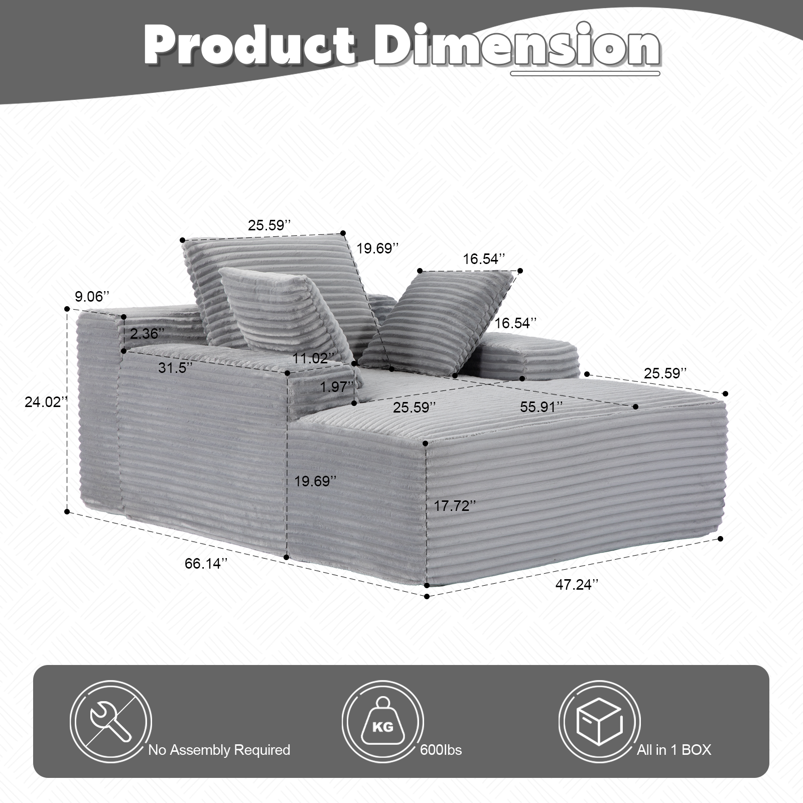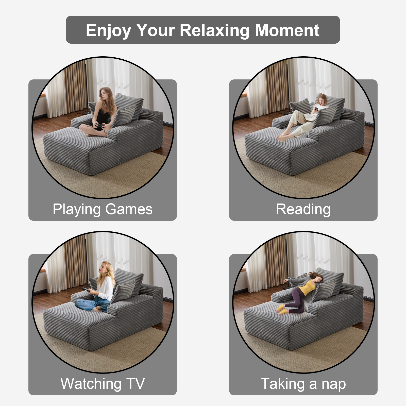 Grey Corduroy Plush Oversized Chaise Lounge Chair