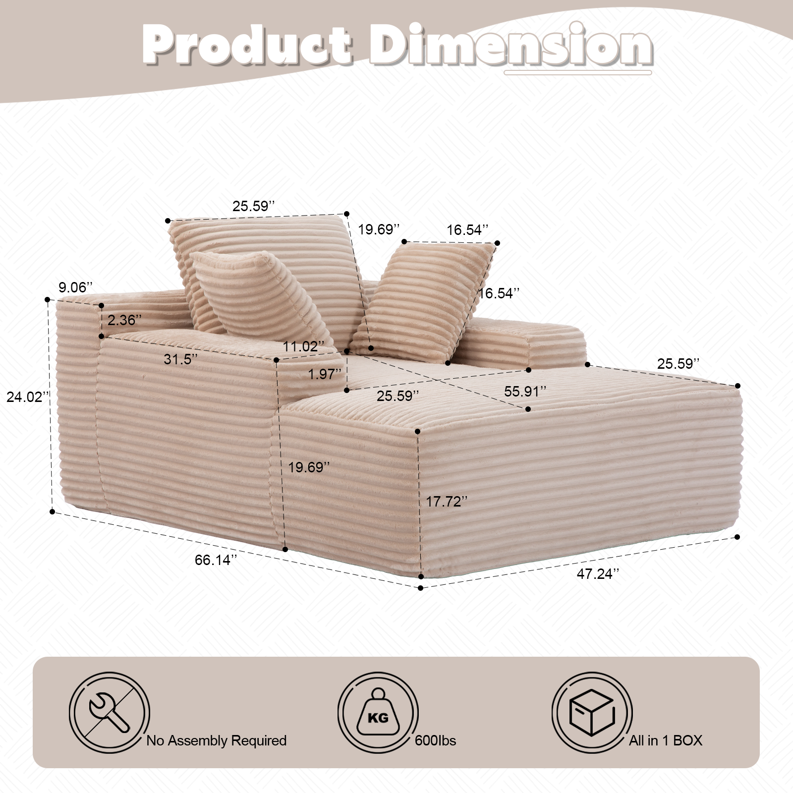 【No Assembly Required for Immediate Enjoyment】Skip the hassle of assembly. Simply unbox and wait for about 72 hours to decompress to start enjoying your new sectional sofa right away for a seamless addition to your home.