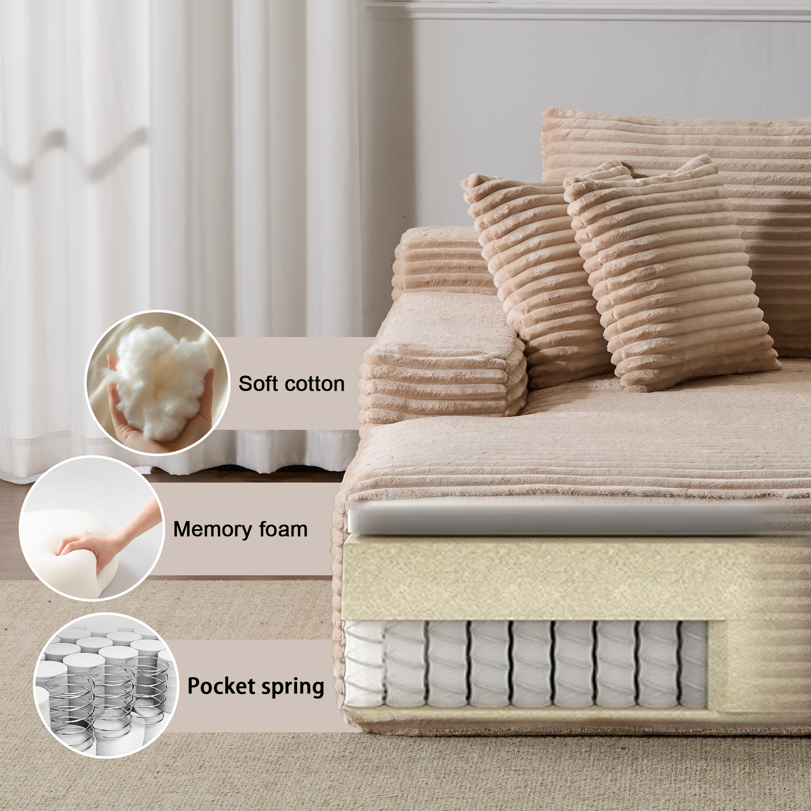 【Suitable for Many Occasions】Whether it's a family gathering, a nap or a happy time with friends and family, this corduroy sofa will be a highlight in your home. At the same time. No matter be collocation Europe type, contracted or modern style household, can perfect fusion with it.