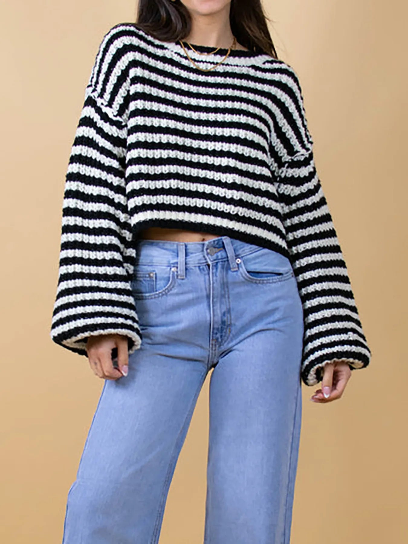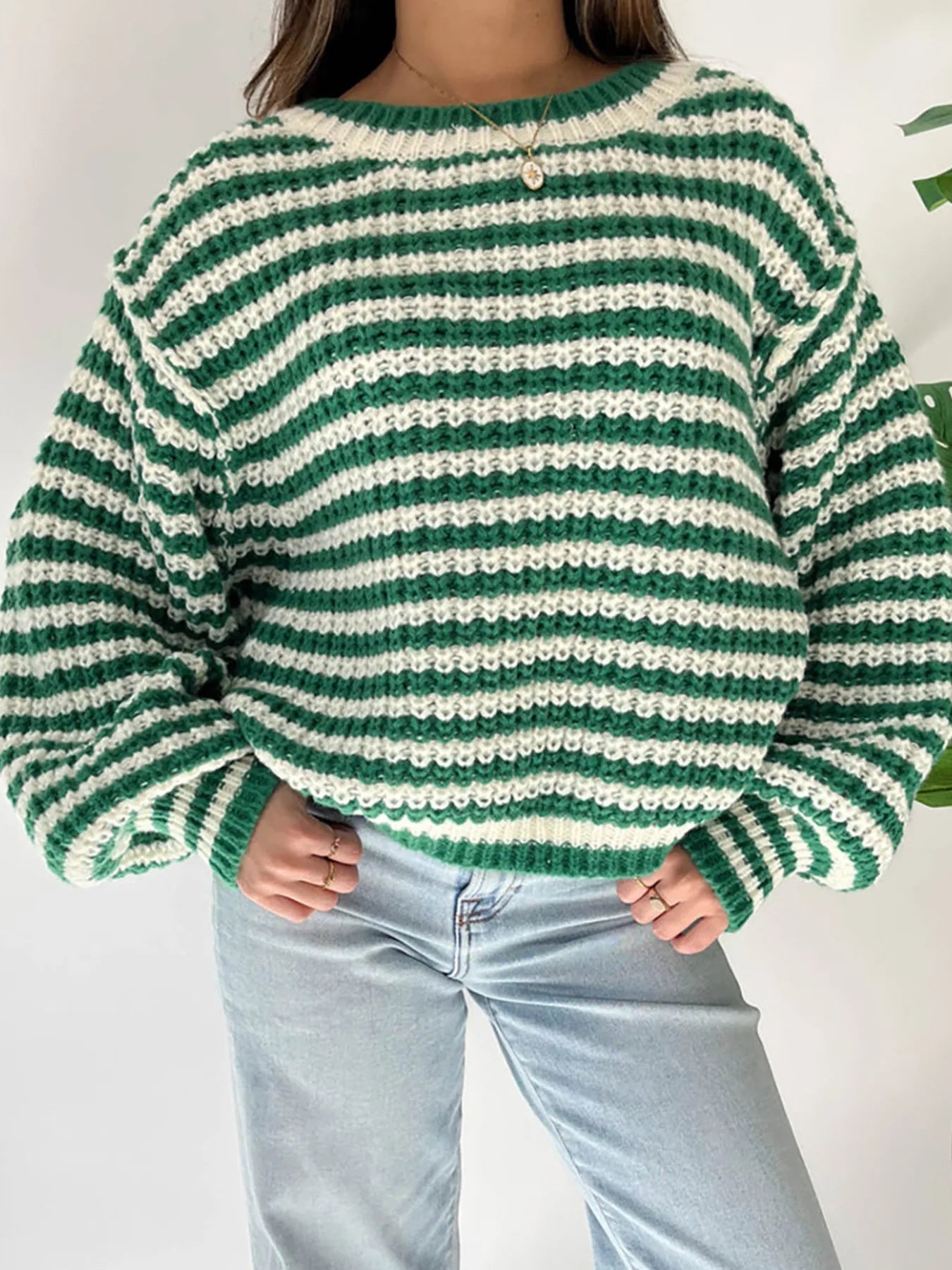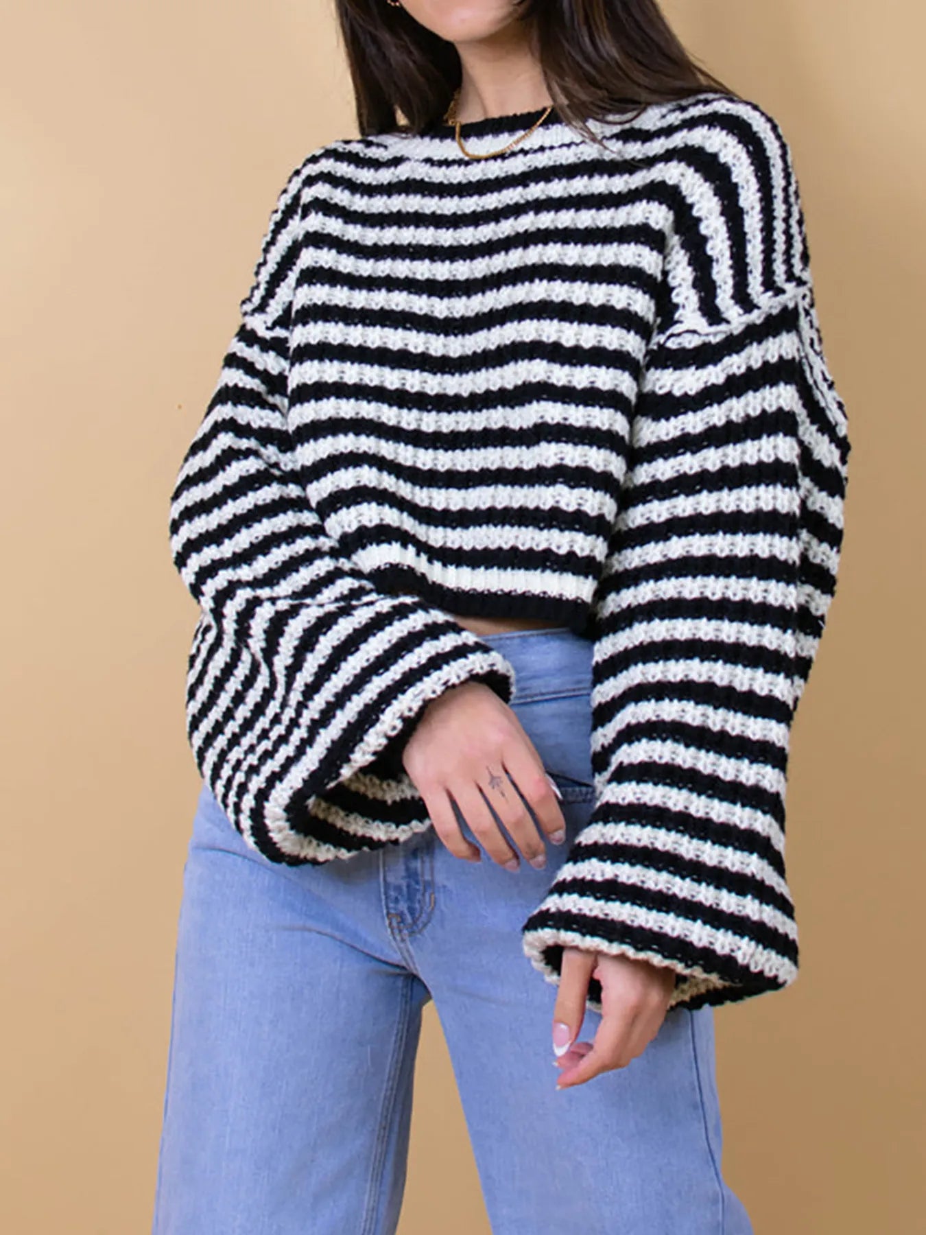 Oversized Striped Drop Shoulder Sweater