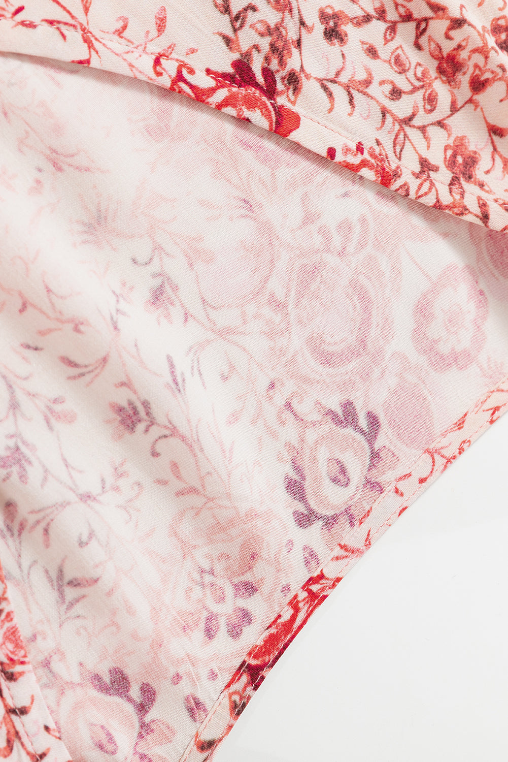Pink Bohemian Floral Print Tassel Tie Long Sleeve Flowy Mini Dress