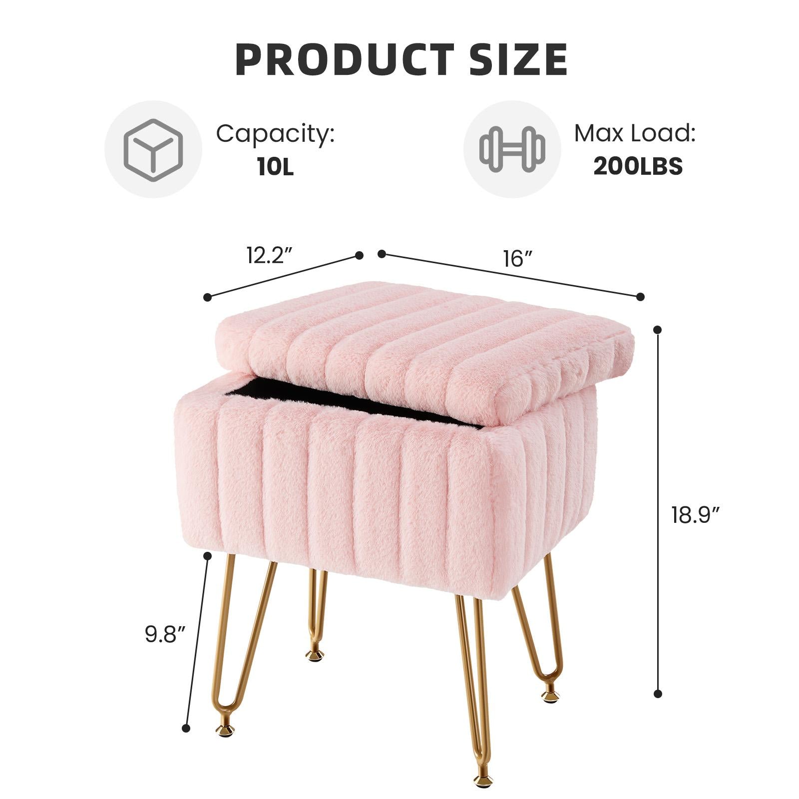 Pink Faux Fur Vanity Stool Chair w/ Storage