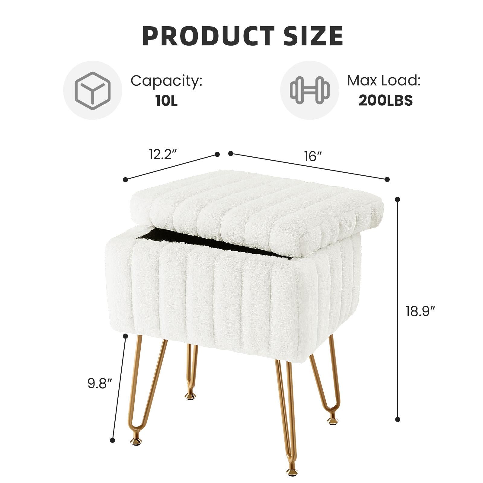 Hidden Storage Space: Enjoy a unique hidden storage space beneath the plush surface of the vanity stools, offering approximately 10L of capacity volume. Perfect for storing various items discreetly, like makeups, cosmetics, magazine, and so on, saving valuable space.
