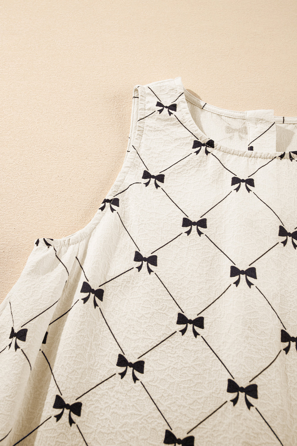 White Bow Checker Pearled Buttons Back Ruffled Sleeveless Mini Dress