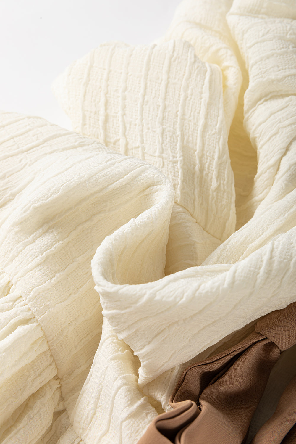 - This white bow front babydoll blouse adds elegance with its delicate bow detail.