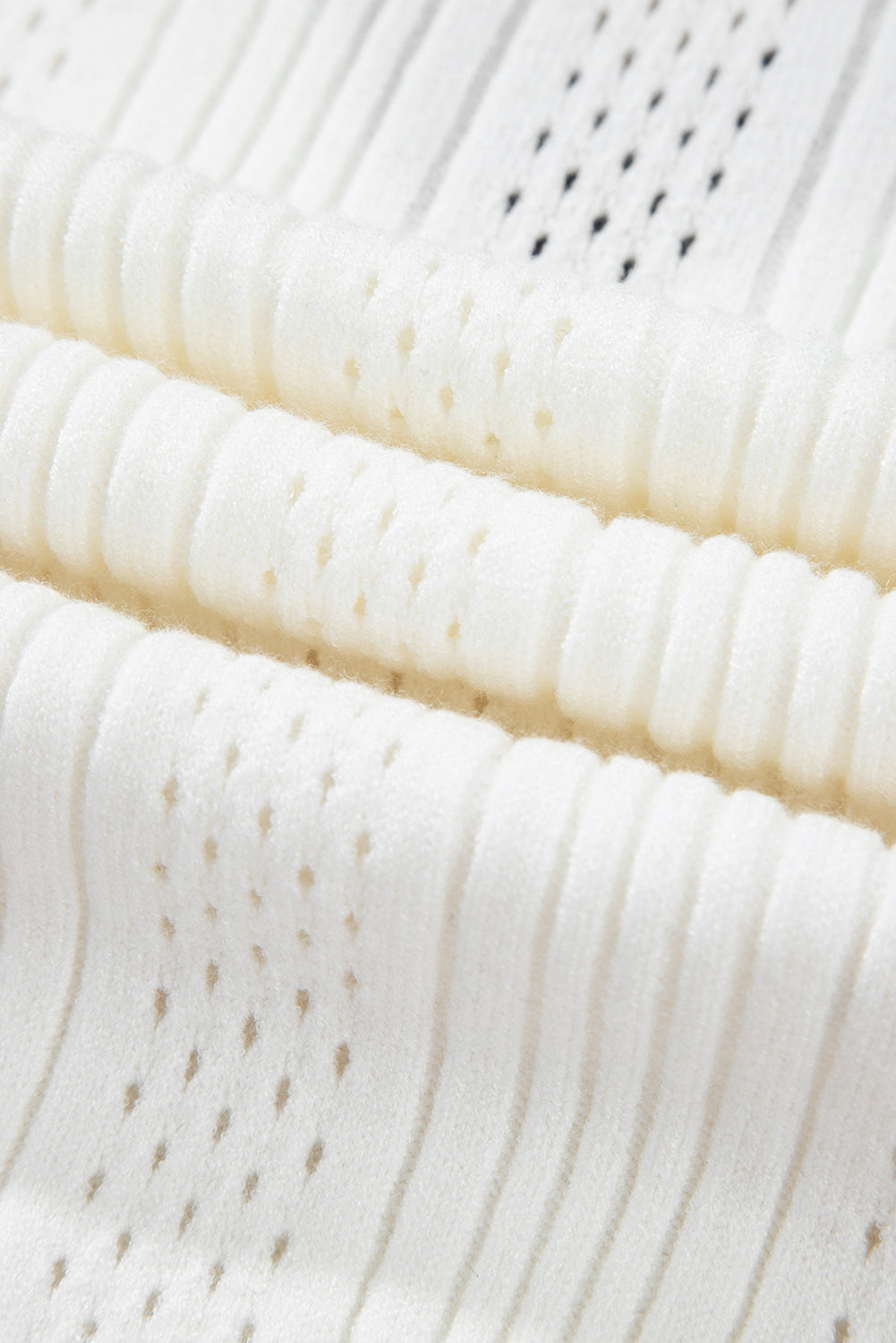 White Contrast Trim Eyelet Knit Colorblock V Neck Sweater Vest