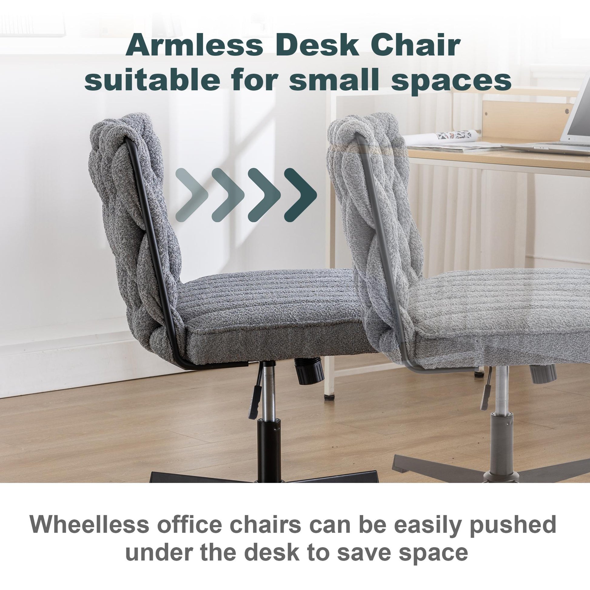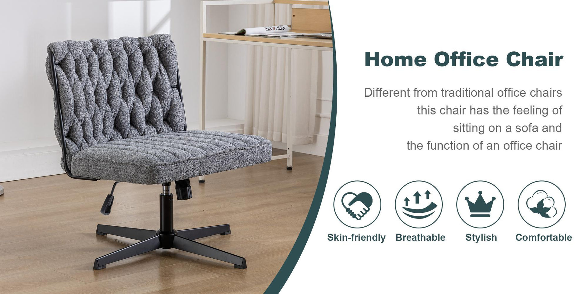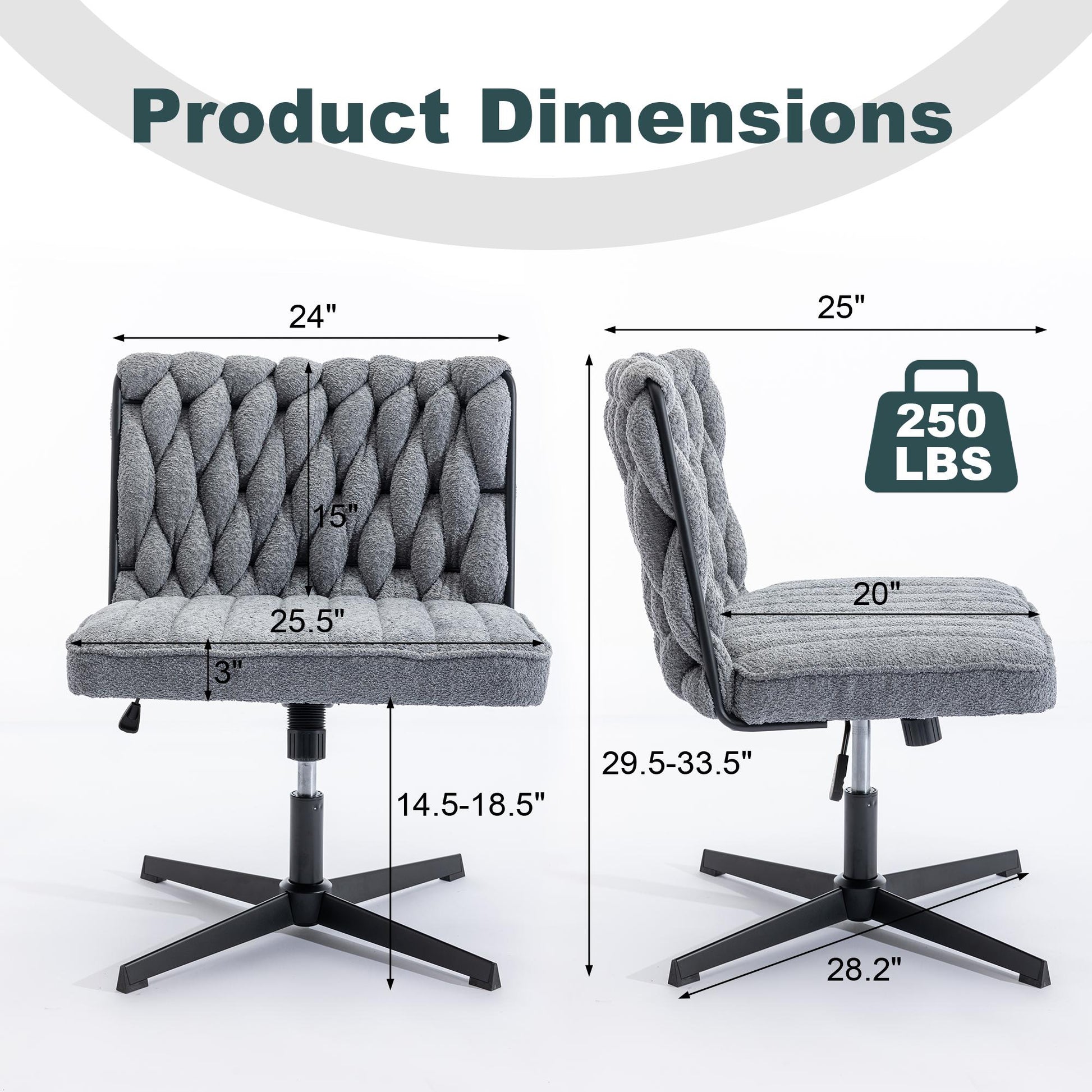 Indulge in the perfect fusion of comfort and style with this armless office desk chair. Its sleek, modern appearance, coupled with intricate woven details, effortlessly complements any decor, creating an ambiance of unparalleled comfort and elegance. Whether gracing offices, bedrooms, studies, living rooms, dressing tables, parlors, or dorm rooms, this chair stands out as the epitome of sophistication.