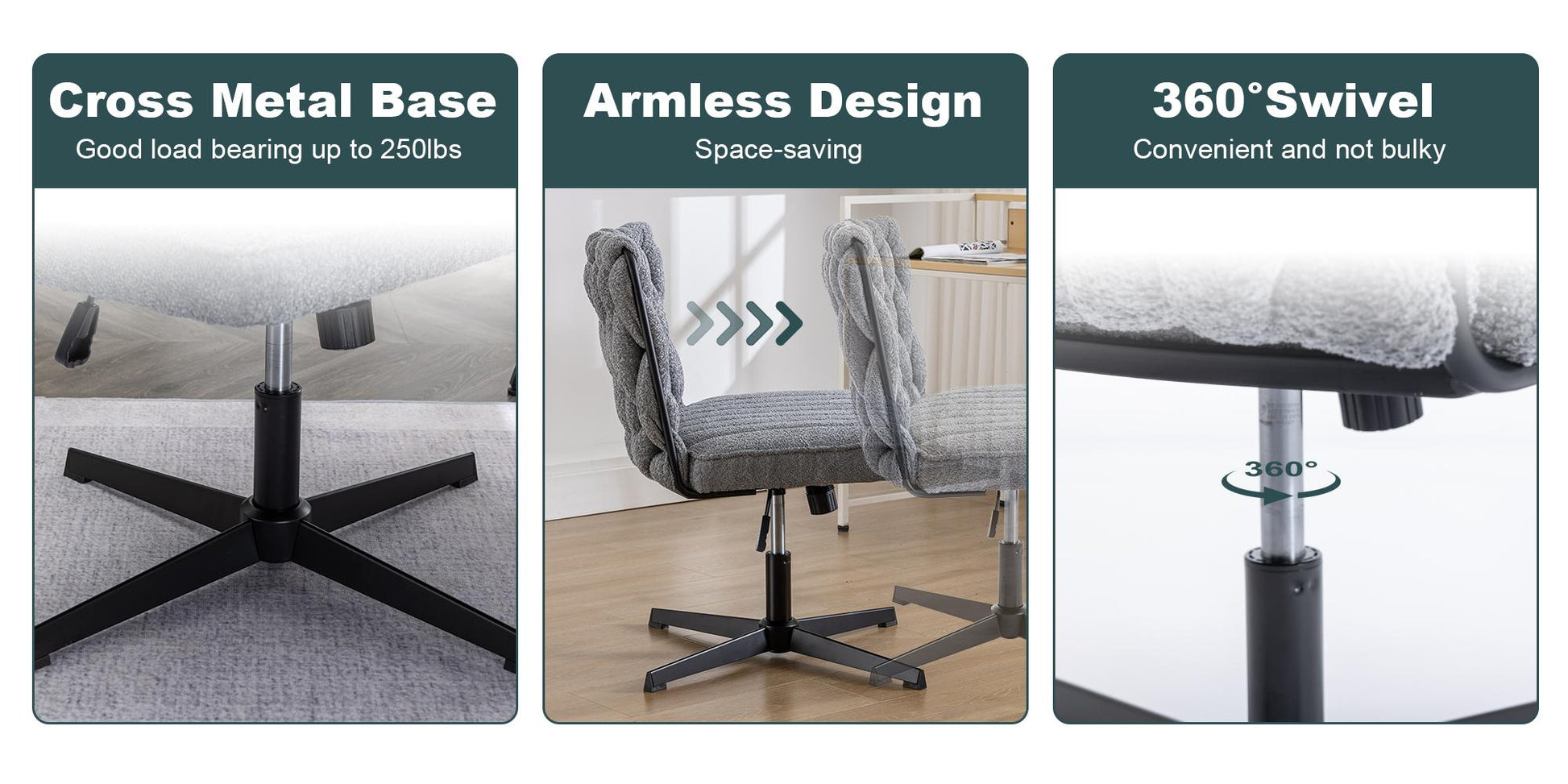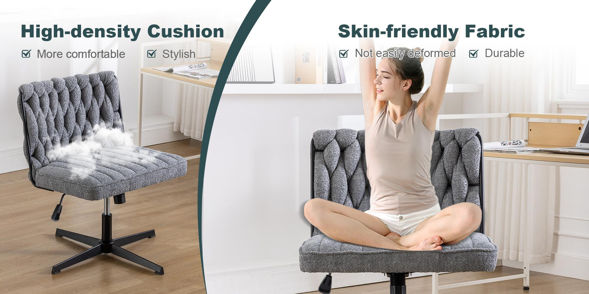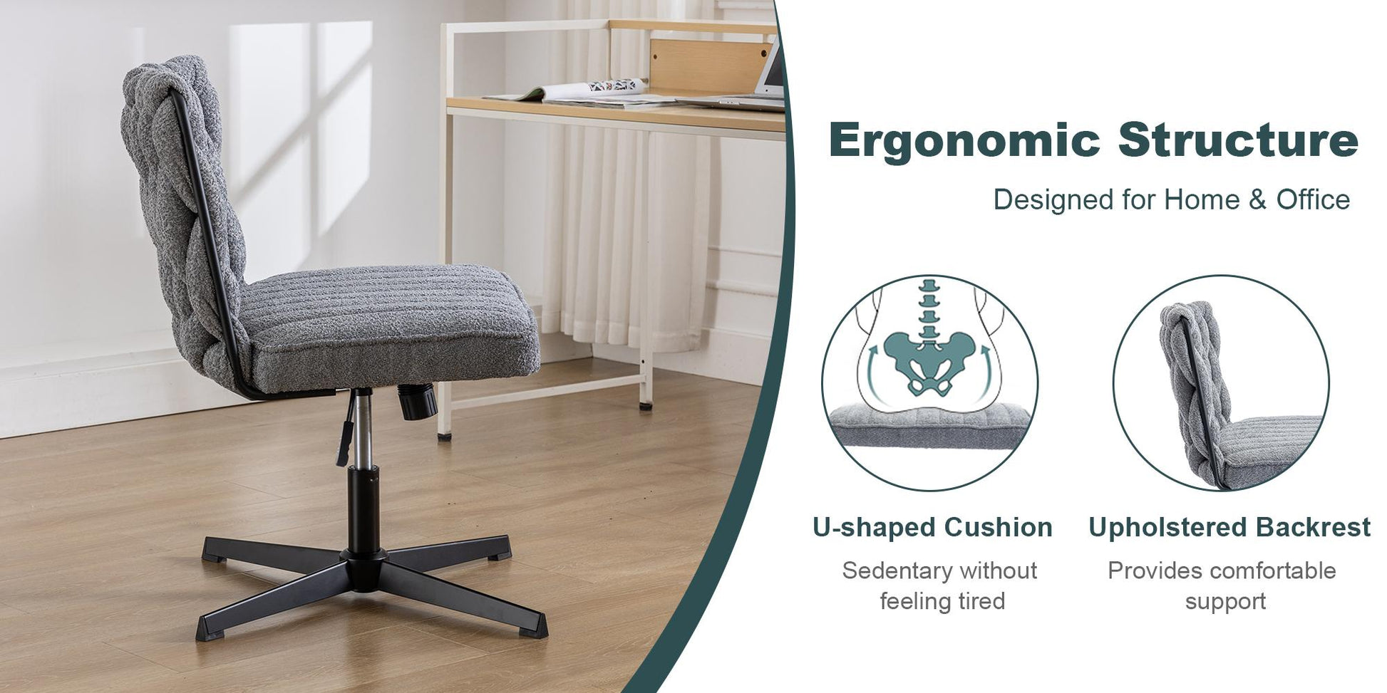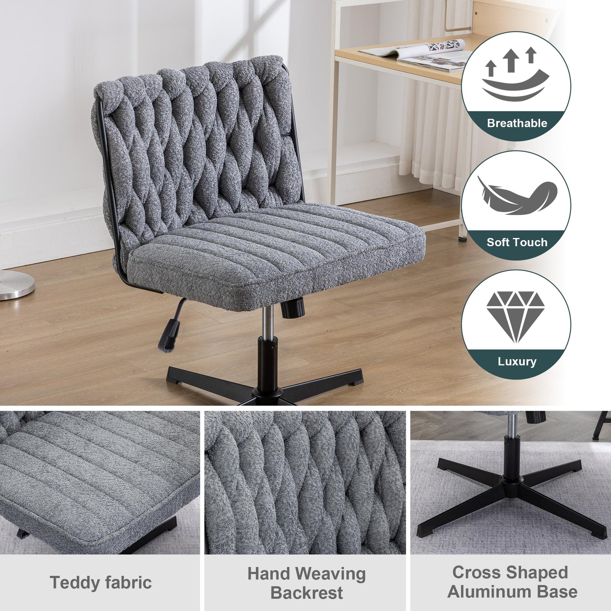 Indulge in the perfect fusion of comfort and style with this armless office desk chair. Its sleek, modern appearance, coupled with intricate woven details, effortlessly complements any decor, creating an ambiance of unparalleled comfort and elegance. Whether gracing offices, bedrooms, studies, living rooms, dressing tables, parlors, or dorm rooms, this chair stands out as the epitome of sophistication.