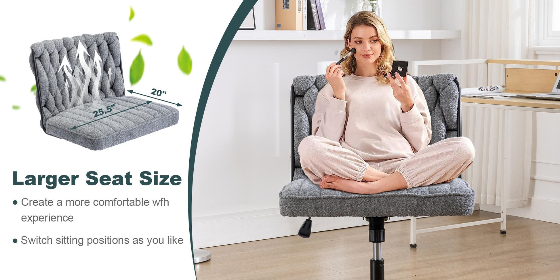 Experience ultimate comfort with the generously widened seat, allowing you to sit cross-legged or nestle comfortably in the chair. The backrest and seat boast high-resilience foam padding, embraced by twill fabric upholstery for a soft and skin-friendly touch. Supported by a TUV certified Class 2 gas lift, this chair can hold up to 250lbs, ensuring enduring comfort and durability. The wider cushion and premium gas pole elevate your seating experience to new heights.